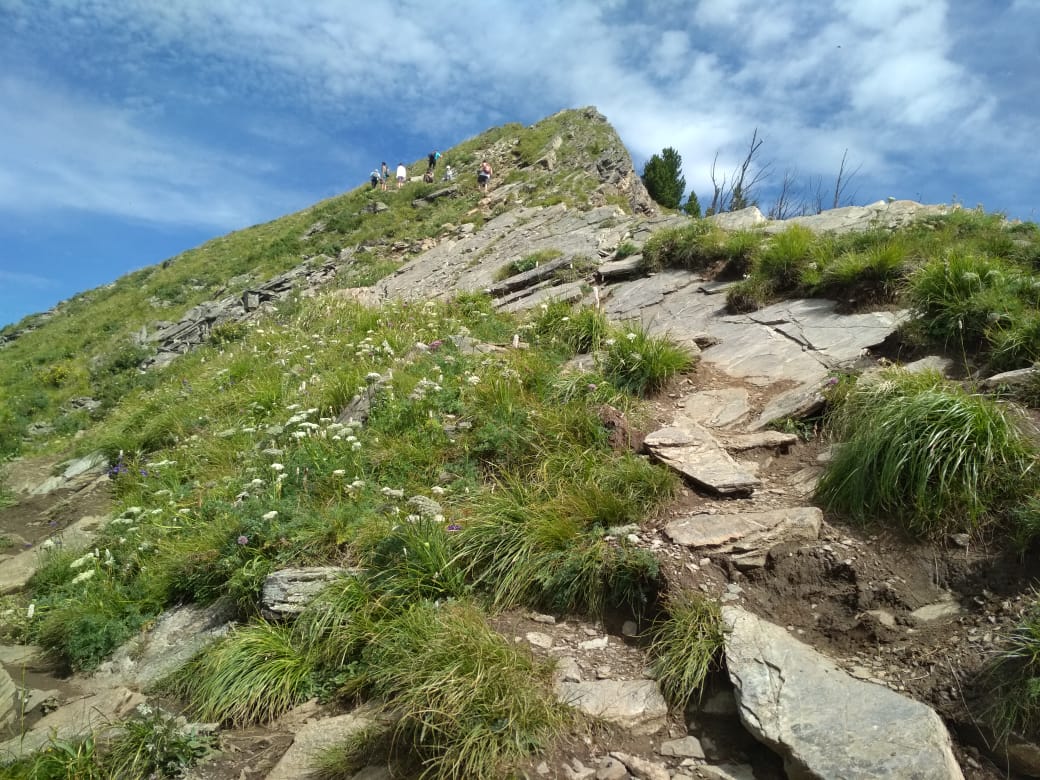 Когда я поднимался, мне было более 60 лет. Порой приходилось идти над обрывом и карабкаться на четвереньках. Не раз видел, как люди 20-40-летние, не выдержав нагрузки, возвращались назад. Я шёл неспеша, любовался красотой местной природы и наслаждался горным воздухом. Молодые люди спортивного сложения, обгоняя меня, подбадривали. Я стал достопримечательностью. По всему маршруту прошла информация, идёт 63-летний дед. Спускающиеся люди с пика здоровались со мной и вдохновляли на продолжение маршрута. На деревьях висели таблички с указателями, сколько процентов пути пройдено. Через 75% маршрута леса стали переходить в альпийские луга. Последний крутой подъём и я на вершине.
