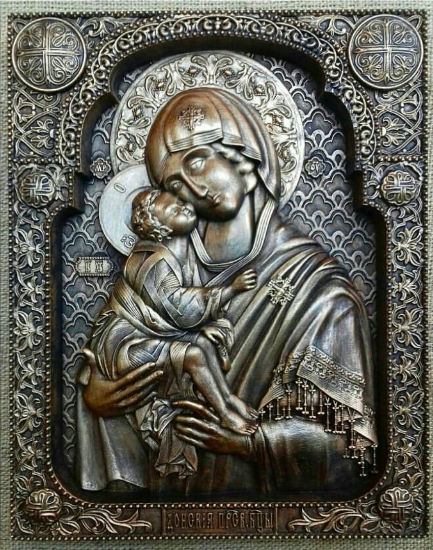 Около года Андрей изучал вопрос их изготовления и вот они с Ириной вырезали из дерева свой первый лик – Донскую икону Божьей Матери, которую оставили себе.