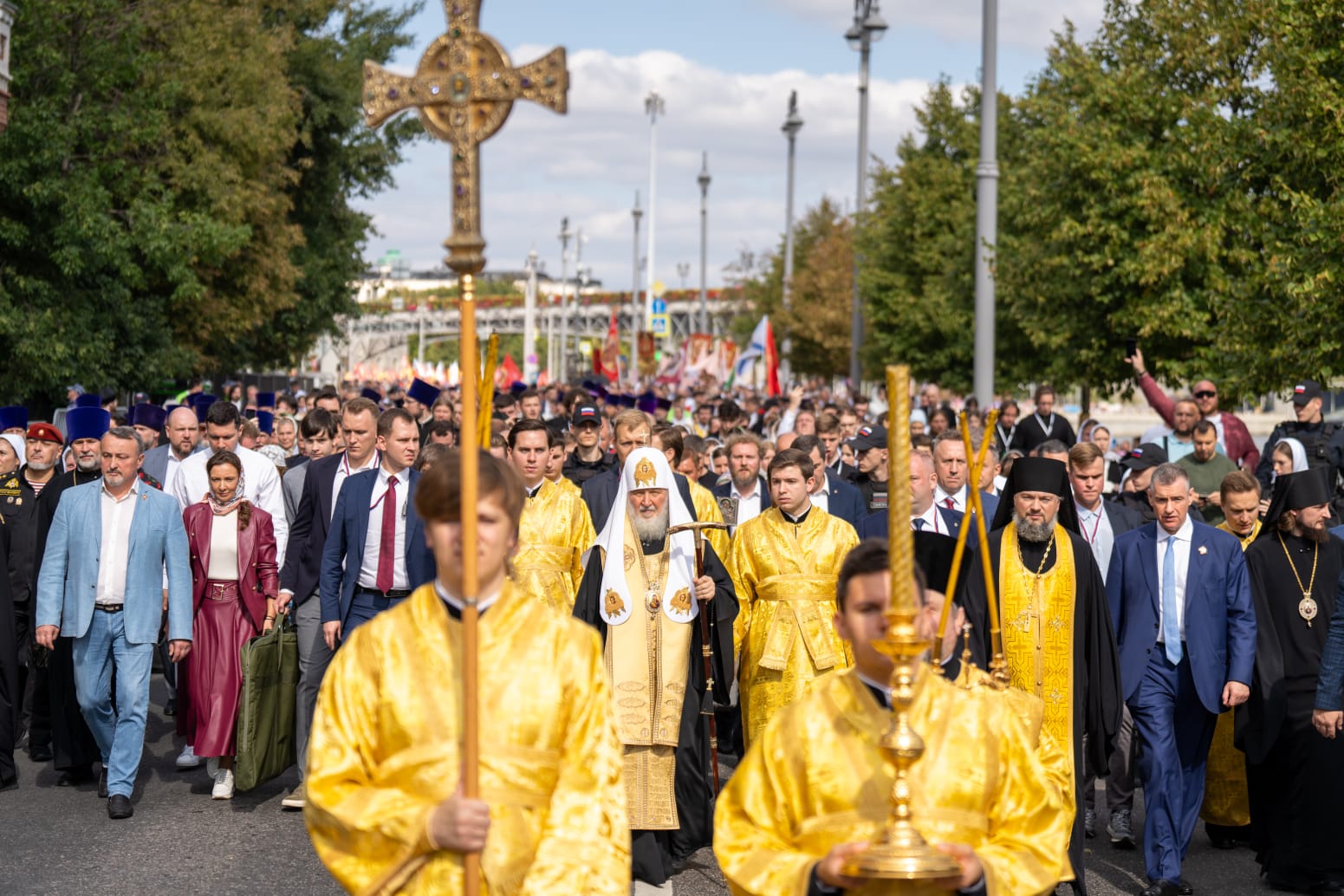 Святейший пообщался с награждёнными после богослужения на празничной трапезе, где губернатор, митрополиты и награжденные смогли выразить, в ответном слове, радость Праздника и благодарность Первосвятителю. Святейший пригласил на Крестный ход, посвященный собору Московских святых, который торжественно шествовал по Первопрестольной на следующий день, 7 сентября, ставший уже историческим - сотни тысяч соборно шествовали и молились о Земле Русской нашим небесным заступникам.