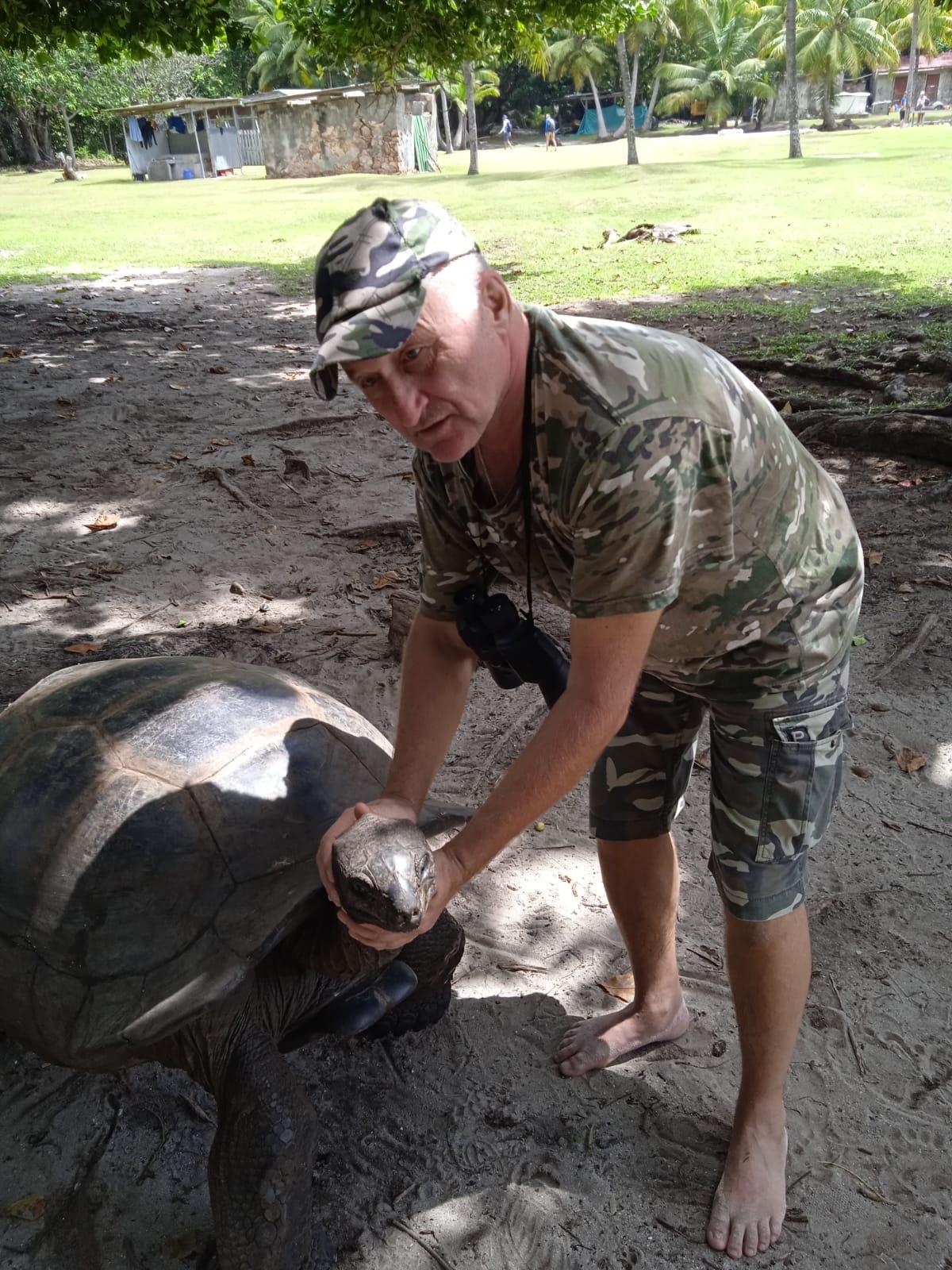 На острове Курьёз, вход в национальный парк 350 SCR. В нем живут гигантские черепахи эдемики Сейшел. Они спокойно разгуливают по острову и общаются с туристами. Особенно любят, когда им чешут шею. С удовольствием вытягивают их и привстают на лапы. Любимые лакомства огурцы.